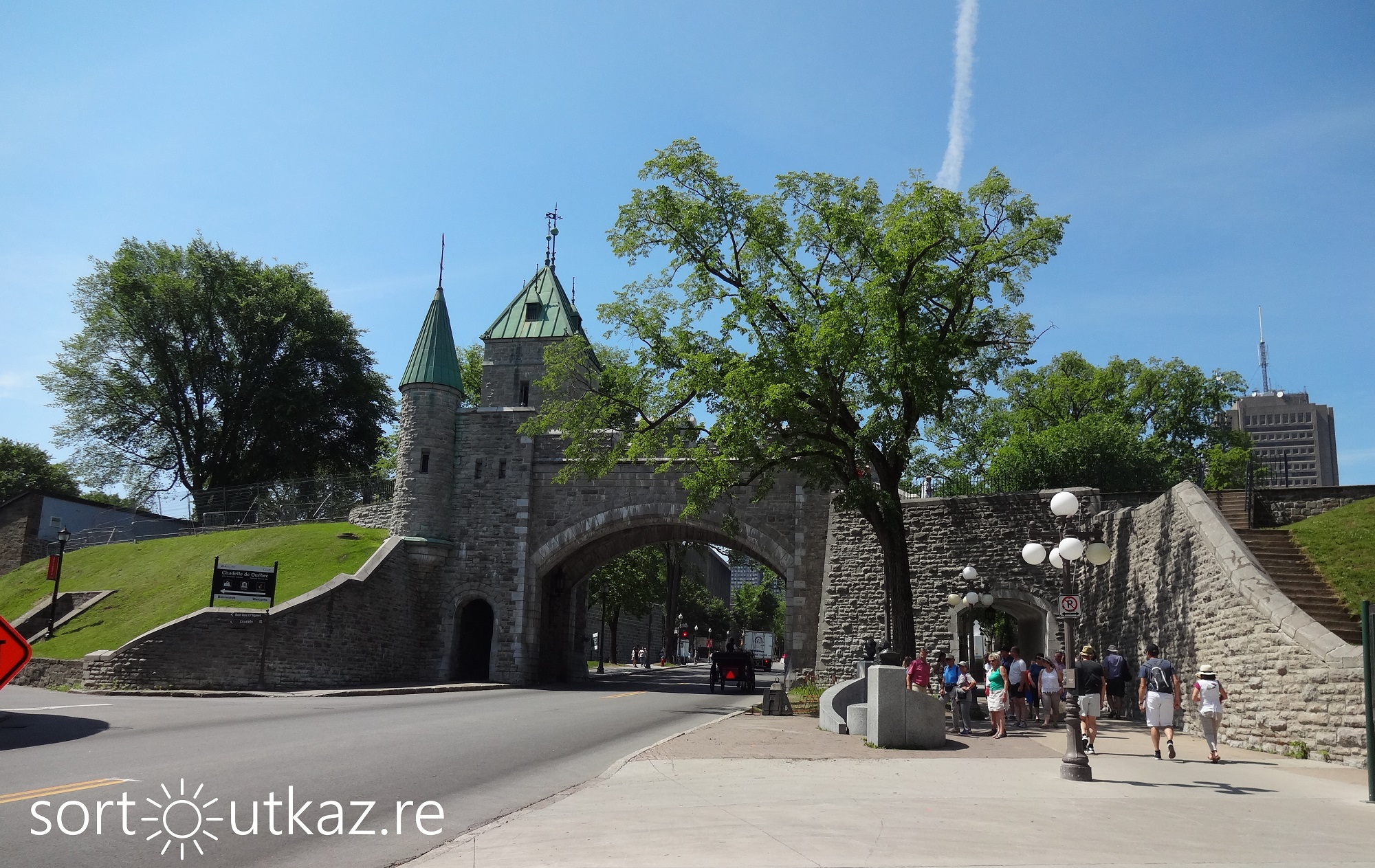 En quittant la Citadelle, nous nous promenons le long des fortifications du Vieux-Québec. Cette ligne de fortification délimite le Vieux-Québec du reste de la ville, et l’on peut trouver en marchant des portes marquant cette séparation.