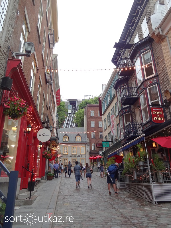 Pour terminer cette journée, nous nous dirigeons à présent vers le quartier Petit Champlain, situé en basse-ville sous la place royale. Il est possible de s’y rendre depuis le Château Frontenac à pieds, ou en empruntant un funiculaire (environ $7.00 pour un aller simple).